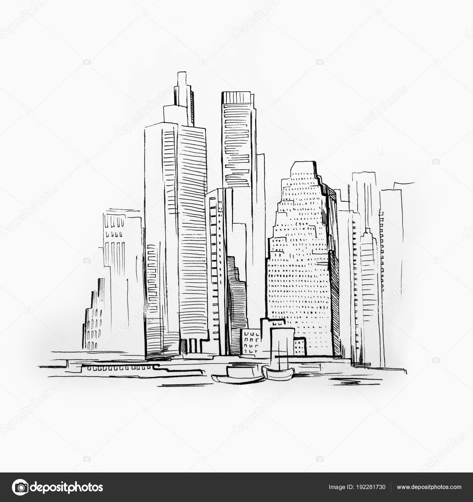 Schizzo Del Grattacielo Su Priorità Bassa Bianca Foto Di