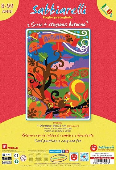 Sabbiarelli Sand It For Fun Album Autunno Maxi Disegno Adesivo Da Colorare Con La Sabbia Adatto Per Adulti E Bambini 26x40cm