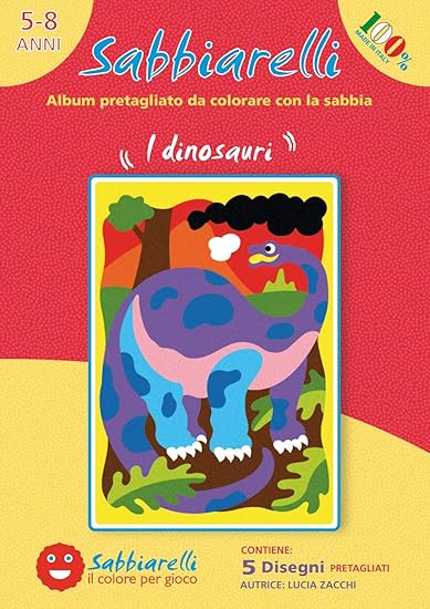 Sabbiarelli Sand It For Fun Album I Dinosauri 5 Disegni Adesivi Da Colorare Con La Sabbia Adatto Per Bambini Anni 5